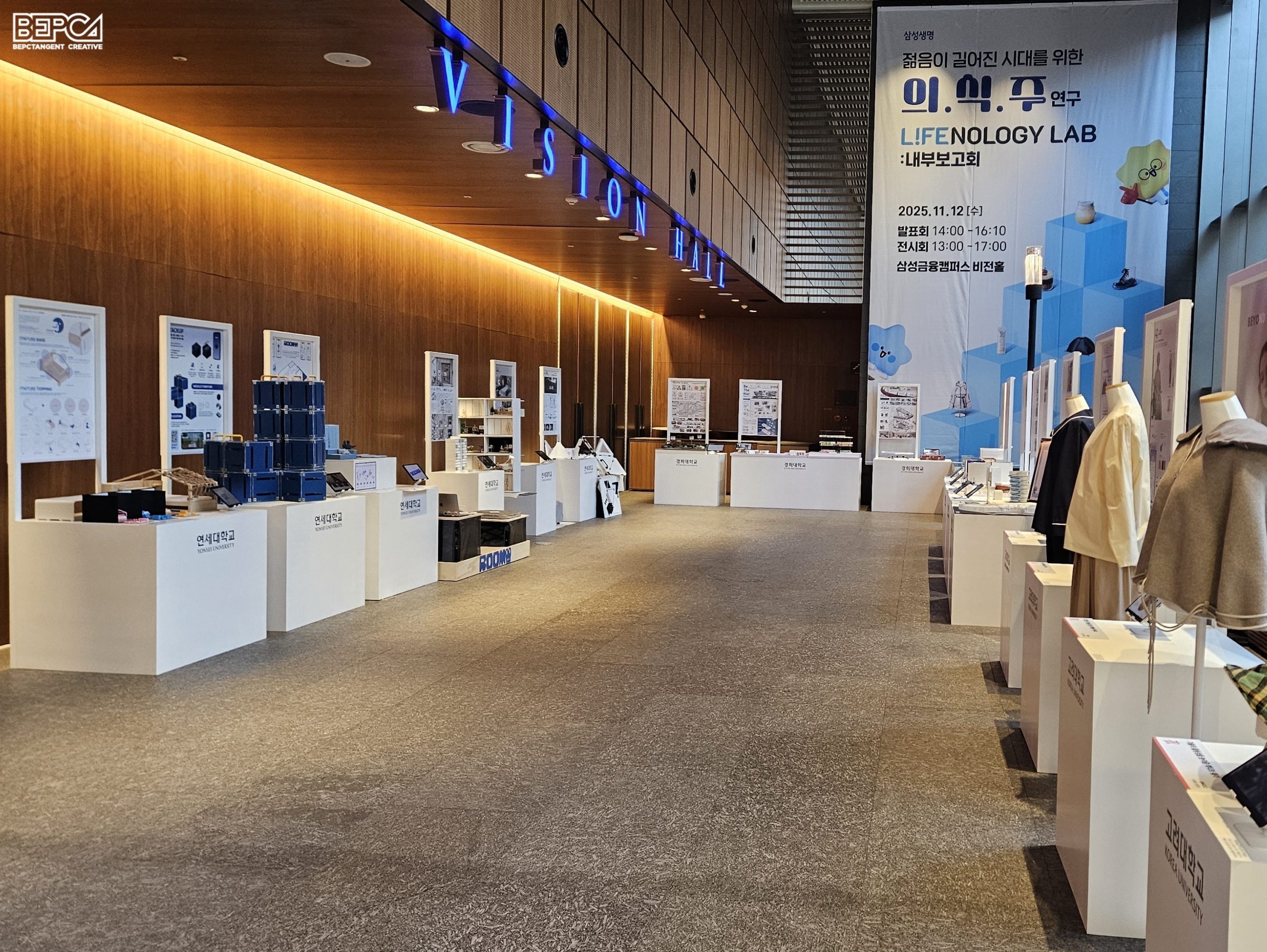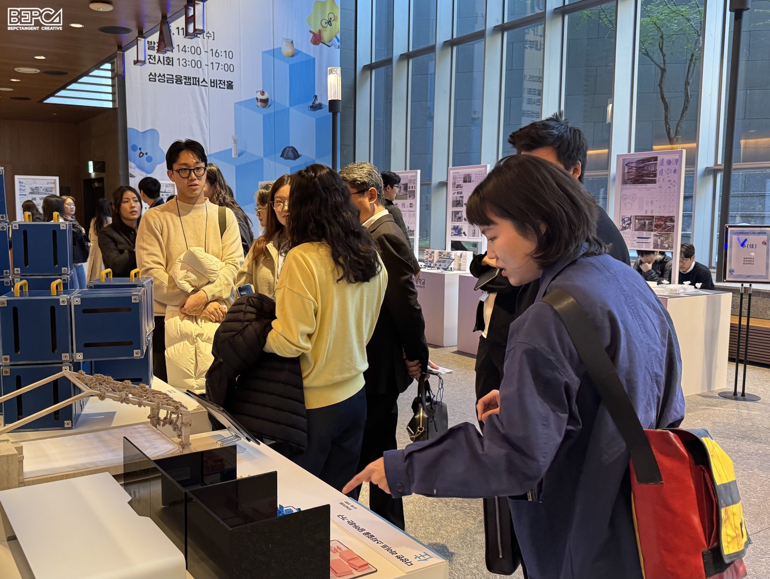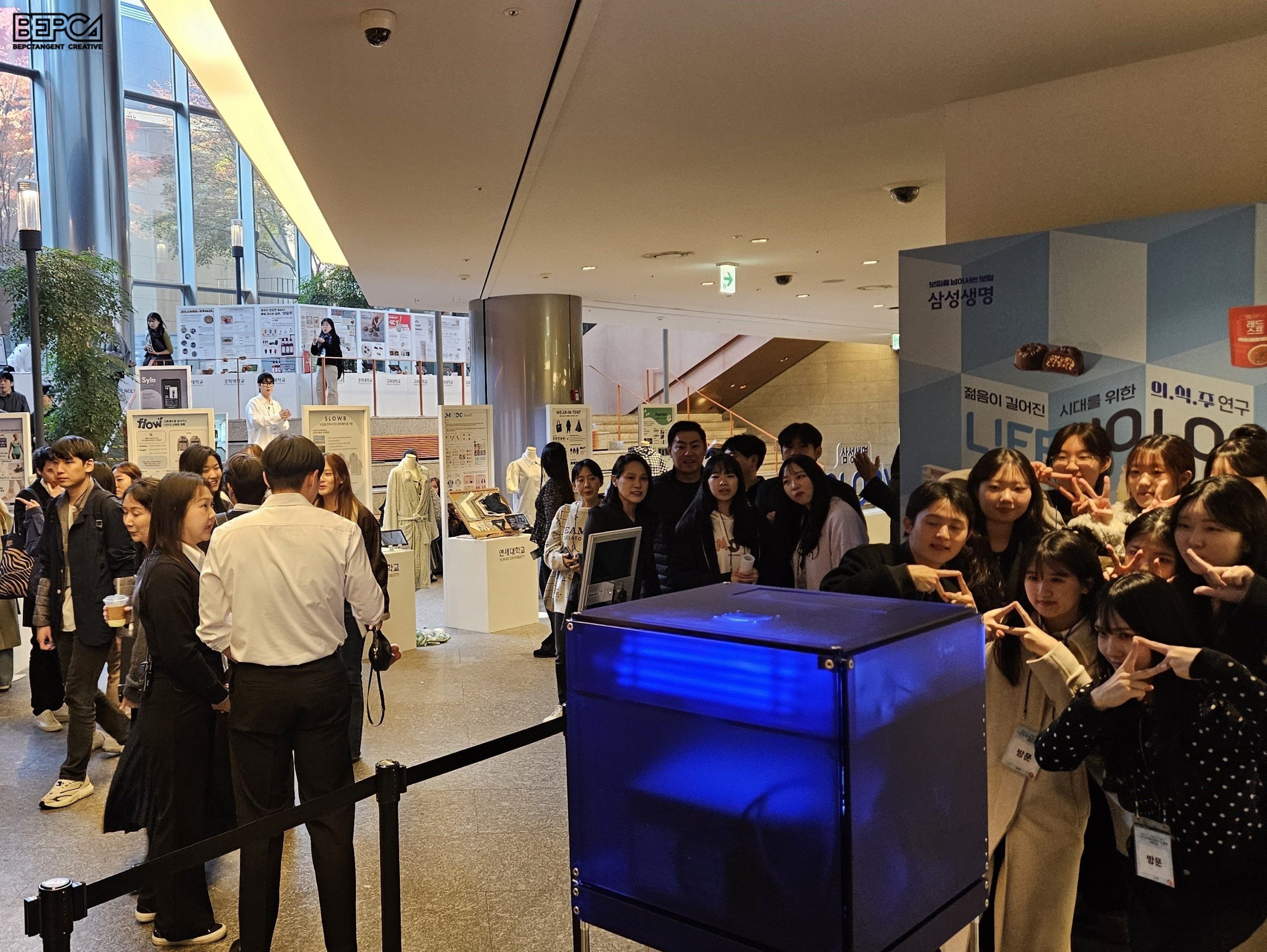 삼성생명 임직원, 참여 학생 및 교수진들이 함께 참여한 내부 보고 전시회