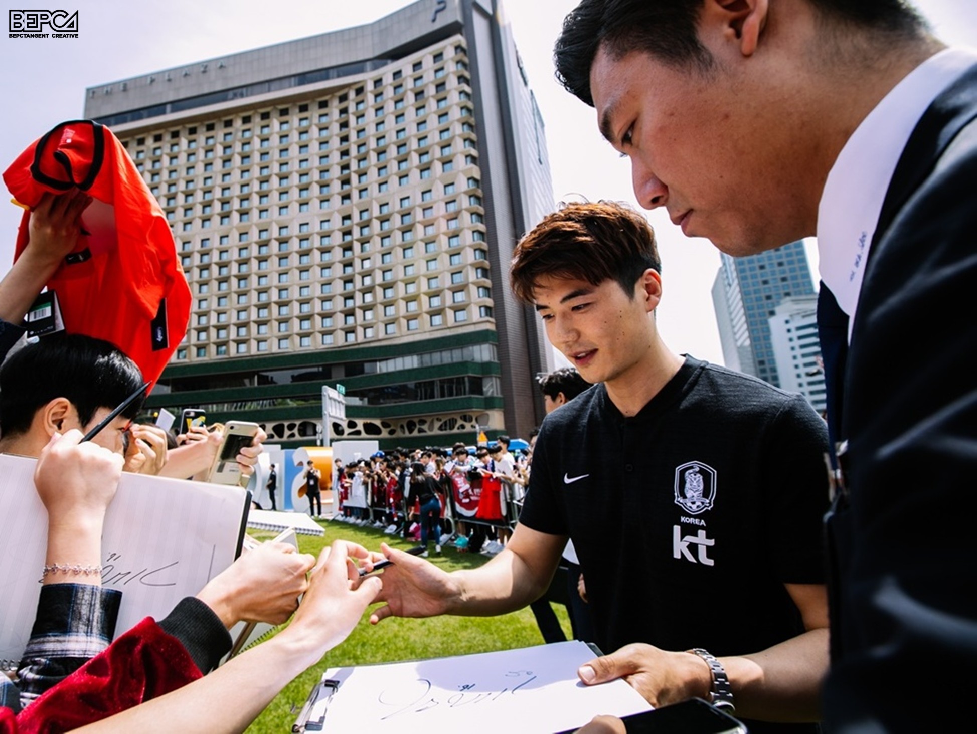 2018 러시아 월드컵에 출전하는 대한민국 축구 대표팀의 출정식을 진행하며