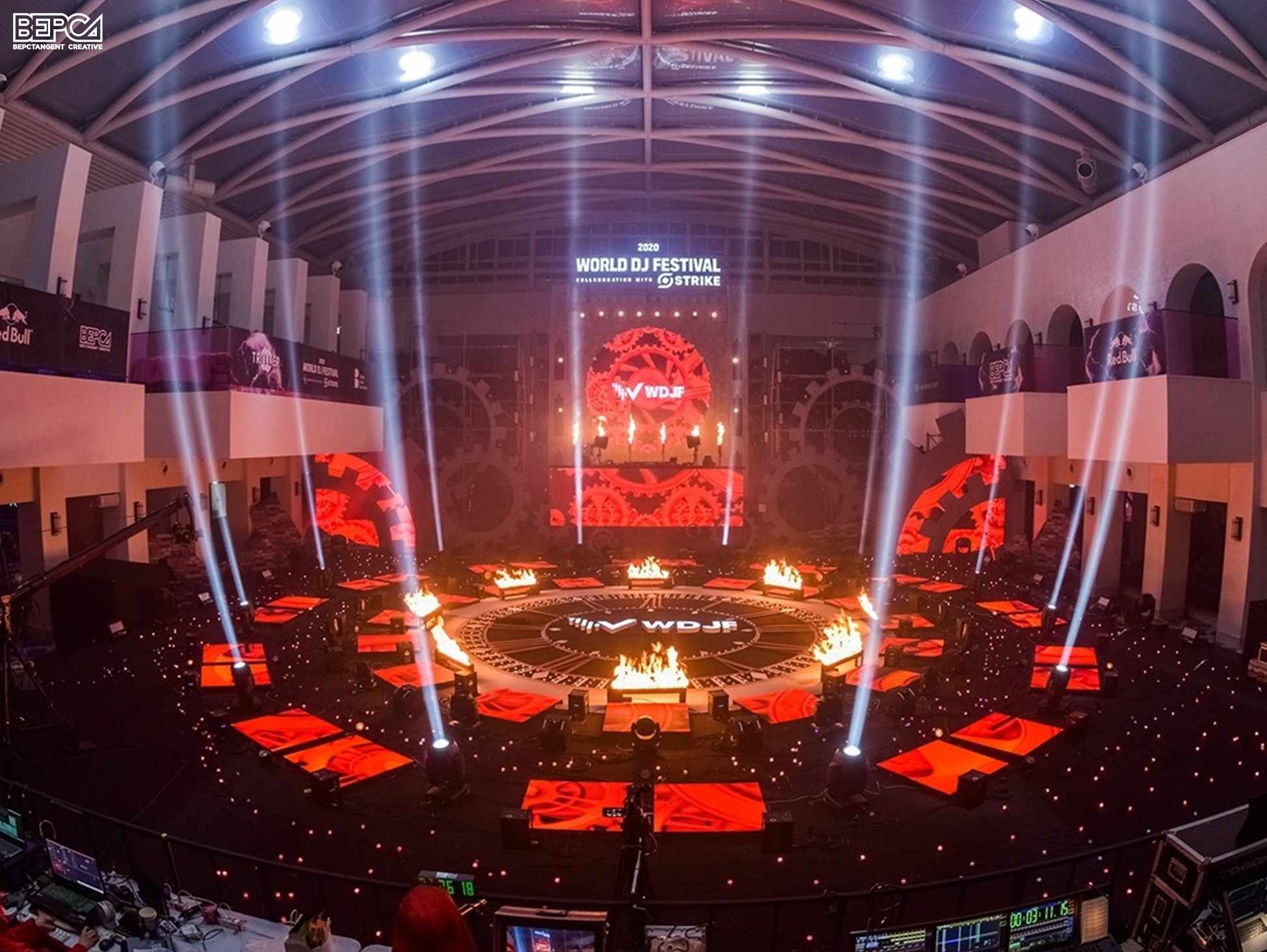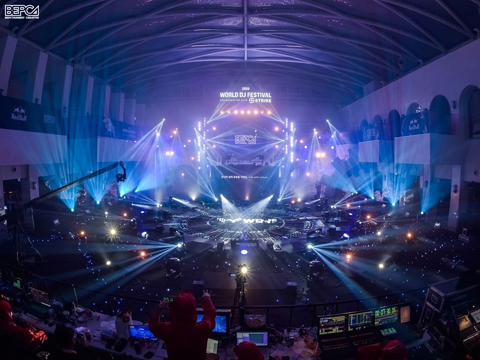 실내 공간에 원형 무대를 지어 조명, 영상, 레이저 등의 화려한 연출은 물론